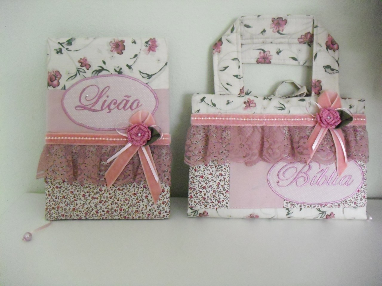 Confeccionado em tricoline 100 algodão, com estampas variadas, marca páginas, alça, bolso e enfeites variados.